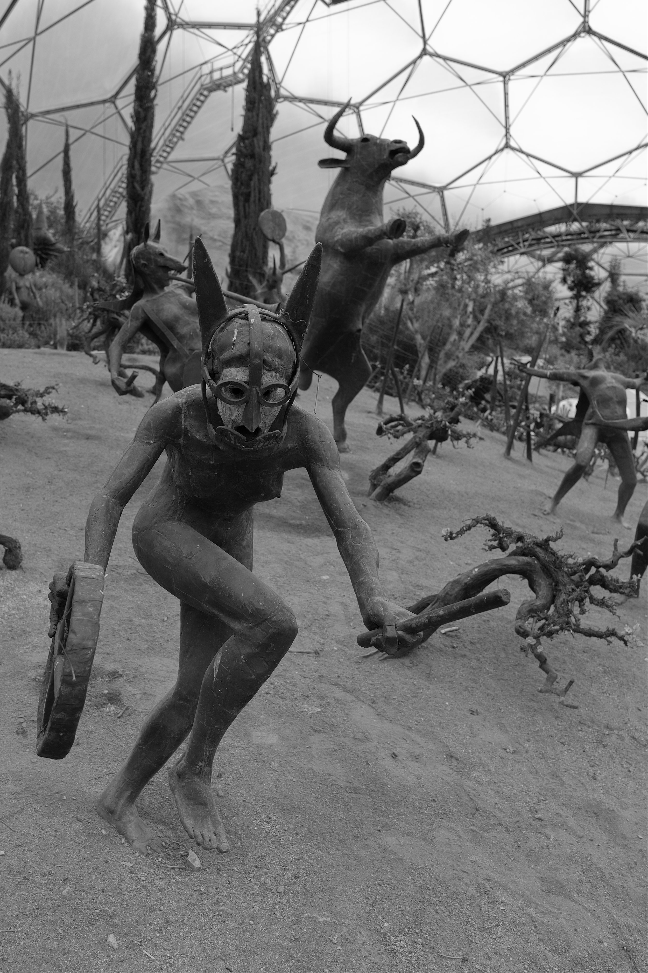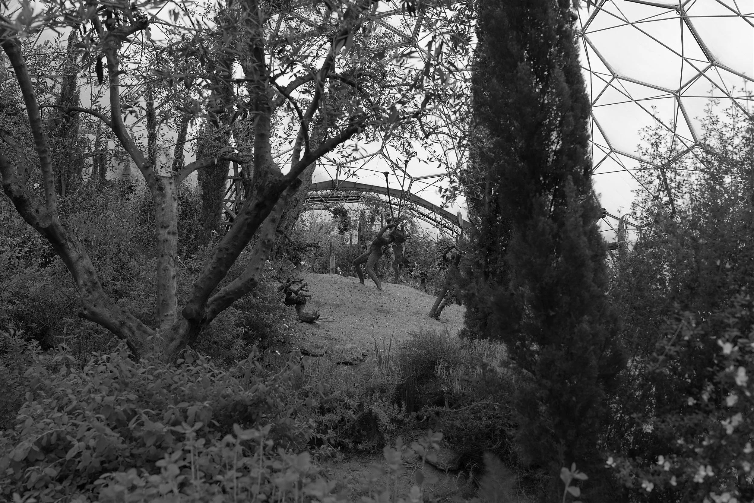 From a photographic standpoint the centre-piece of the mediterranean dome is a collection of statues by Tim Shaw depicting the Ancient Greek myth of Dionysus, the god of wine and representing wild, untamed nature. The statues are integrated into a vineyard celebrating different grape varieties.