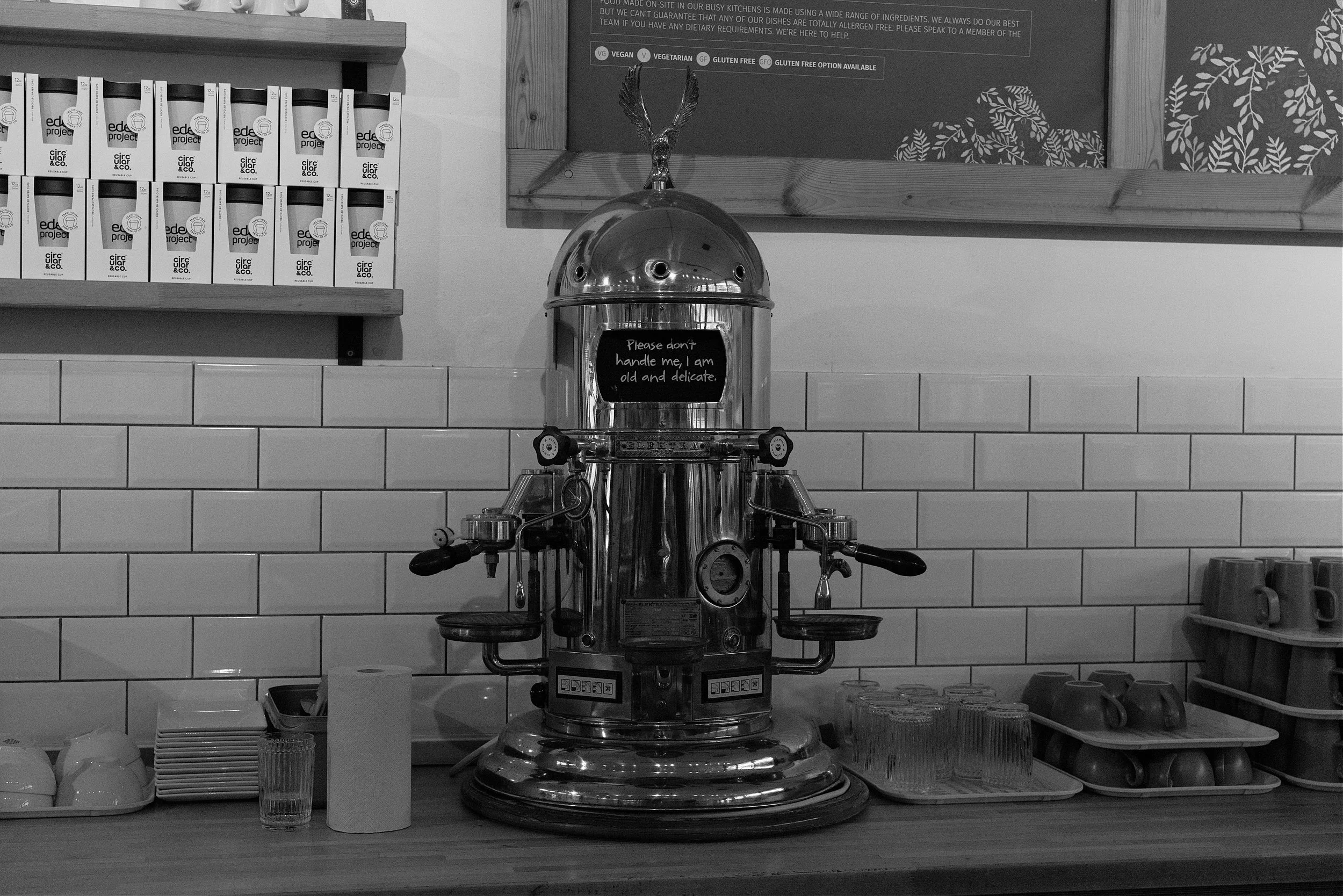They had an old coffee machine with the inscription “Please don’t handle me, I am old and delicate”. We clearly had a great deal in common.